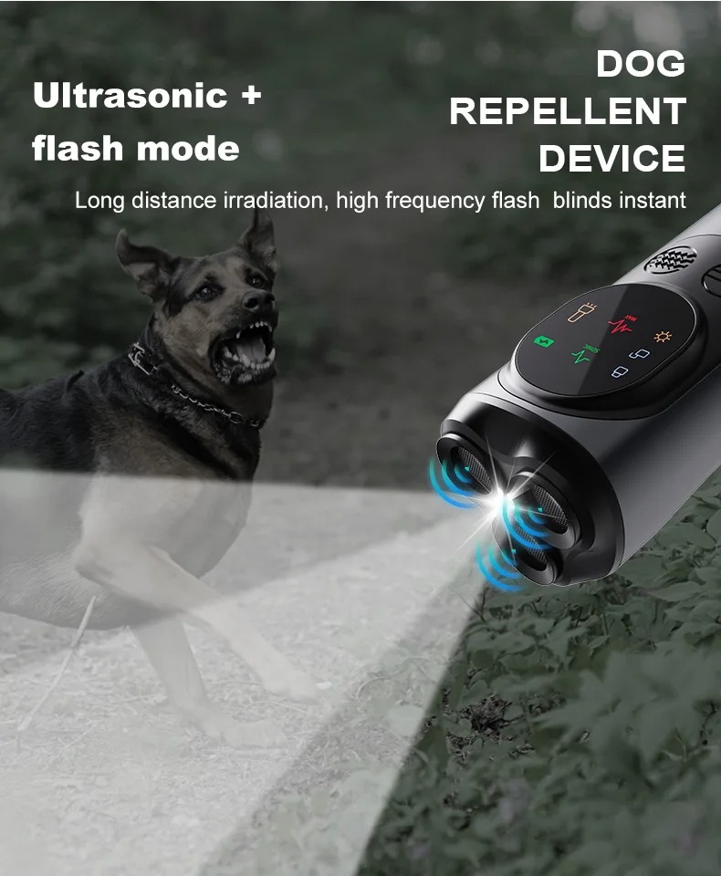 ULTRASONIC DOG TRAINER - це потужний відлякувач собак на три випромінювачі за допомогою ультразвуку вбудованим акумулятором та яскравим ліхтариком.